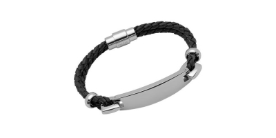 Modernes zweireihiges Armband aus schwarzem Leder. Das Armband im geflochtenen Look kann dank seines Magnetverschlusses besonders einfach angezogen werden. Sie können das Armband wahlweise in einer Länge von 19cm oder 21cm bestellen.