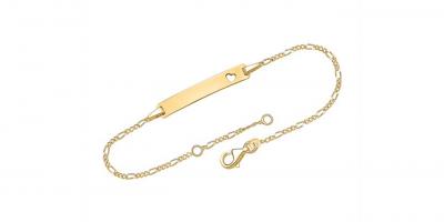 Vergoldetes Armband aus Sterlingsilber mit einer gravierbaren Platte und Herzchenmotiv.