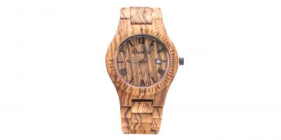 Jedes Exemplar wird in unserer Manufaktur mit grosser Sorgfalt und Präzision von Hand hergestellt. Zuerst werden die Elemente für Gehäuse und Armbandglieder aus einem Stück Zebranoholz herausgeschnitten. Anschliessend erhält das Holz durch den Schliff und die Politur eine schützende Lackierung. Dadurch wirkt die Uhr edel und trägt sich sehr angenehm auf der Haut.