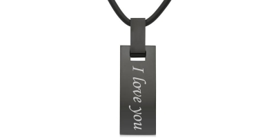 Moderner Edelstahlanhänger mit hochglanzpolierter und durch das Ionic-Black-Plating Verfahren geschwärzter Oberfläche. Der Anhänger wird mit einer Kautschukkette wahlweise in 45 und 50 cm geliefert. Zusätzlich ist bereits eine hochwertige Lasergravur im Preis enthalten.