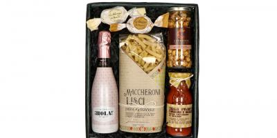 Haben Sie schon mal darüber nachgedacht, Ihren Lieblingsmenschen mit einem romantischen Dinner zu überraschen? Diese Geschenkbox enthält alles, was Sie dafür brauchen. Enthalten sind hochwertige Pasta aus Italien, die mit dem passenden Sugo verfeinert werden. Angestossen wird mit dem enthaltenen Schaumwein. Zum Dessert gibt es Sesamhaselnüsse und Amaretti, die dem Abend noch weiter versüssen. So schlägt das Herz sofort höher!