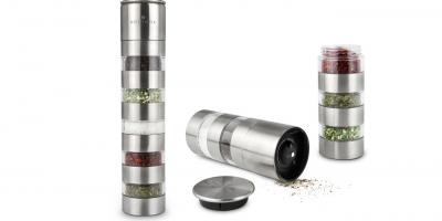 Wer gerne würzt, dafür aber nicht alle Gewürze auf den Tisch stellen möchte, ist mit dieser Mühle bestens bedient. Die Mühle beinhaltet 5 verschiedene Gewürze und ein kräftiges Keramikmahlwerk und ist ein wunderbares Geschenk für Kollegen, Mitarbeiter oder als Mitbringsel zum nächsten Dinner.