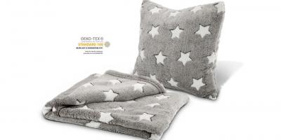 Ein tolles Geschenk für Gross und Klein! Mit diesem Kissen-Decken-Set bringen Sie ein Stück der Sterne ins eigene Schlafzimmer.
