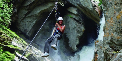 Gorge Alpine - der schönste und sichere Weg von Saas-Fee nach Saas-Grund. Eine steile und wilde Schlucht hat die Feevispa in den Fels gefressen. Zwischen Wasser, bizarrem Fels und Himmel führt der variantenreiche Kletterstieg über Hängebrücken, Stahlseile, Leitern und Eisenstifte. Höhepunkte sind der Pendelgang und die rasanten Seilbahnfahrten. Wem das Erlebnis anfänglich vielleicht eine Portion Mut abverlangt, wird später aus Freude über den Sieg über die eigene Angst jauchzend die Fahrten geniessen!