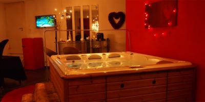 Mit 120m² bietet das romantische Zimmer viel Platz und ist entsprechend gut ausgestattet. Das runde Wasserbett mit 3m Durchmesser bildet das Herzstück des Zimmers. Im zimmereigenen Whirlpool entspannen Sie sich mit Ihrer Begleitperson und lassen sich von seinen unzähligen Massagedüsen verwöhnen. Die liebevolle Einrichtung mit vielen Beleuchtungs- und Spiegeleffekten sowie erotische Düfte sorgen für ein äusserst romantisches Ambiente.