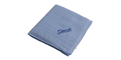 Dieses schöne Nuscheli aus 100% Baumwolle wird mit Ihrem Wunschnamen bestickt.