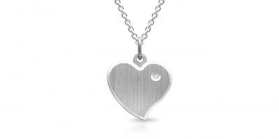 Kette aus 925er Silber mit hochwertigem Anhänger in Form eines geschwungenen Herzens aus 925er Silber mit Steinbesatz. Der Anhänger besitzt eine mattierte Oberfläche mit poliertem Rand. Dank der Rhodinierung ist der Silberanhänger anlaufgeschützt. Die Kette existiert in folgenden Längen: 40cm, 45cm sowie 50cm.