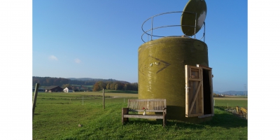 Vor dem Hof erwartet Sie danach auch bereits das in ein Häuschen umgebaute Silo, das sogenannte Sternguckernest. Auf der oberen Etage befinden sich zwei Schlafplätze direkt unter der Luke im Dach. Die Lounge auf der unteren Etage lädt zu gemütlicher Zweisamkeit ein. Geniessen Sie die romantische Zeit zu zweit direkt unter dem Sternenhimmel.